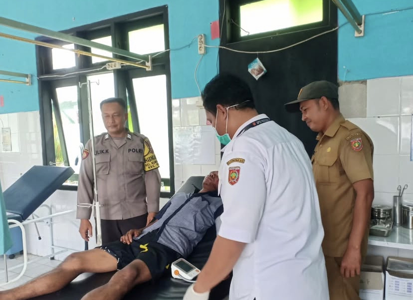 Bhabinkamtibmas Polsek Kumai, jajaran Polres Kotawaringin Barat (Kobar), Aiptu Lilik Kurnianto saat mendampingi pengobatan ES di Puskesmas Kumai./FOTO: ist