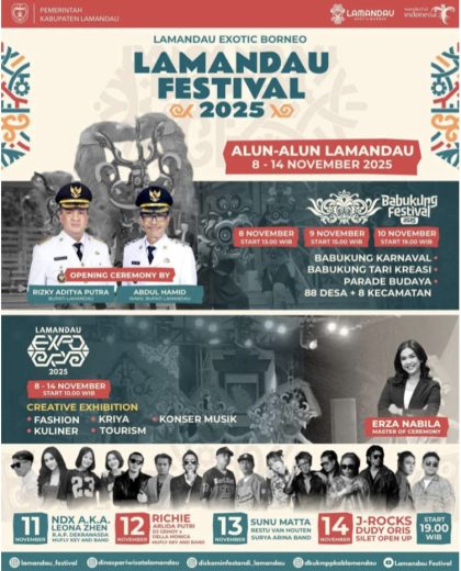 Pemkab Lamandau Pemkab Lamandau Demi Tingkatkan Pariwisata, Festival Babukung dan Lamandau Expo 2025 Segera Digelar di Lamandau November 4, 2025 • Bupati Lamandau Rizky Aditya Putra memimpin langsung rapat tindak lanjut dan konferensi pers persiapan acara...