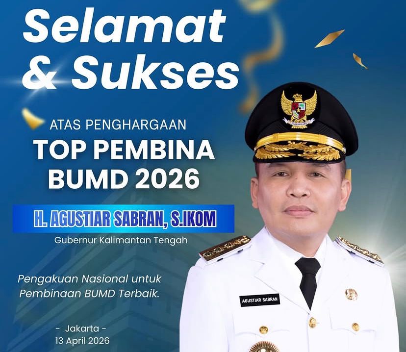 PALANGKA RAYA, News – Prestasi membanggakan diraih Pemerintah Provinsi Kalimantan Tengah. Gubernur Kalimantan Tengah, Agustiar Sabran, dianugerahi penghargaan TOP Pembina BUMD 2026 dalam ajang nasional yang diselenggarakan Majalah Top Business bersama Institut Otonomi Daerah (i-OTDA) dan sejumlah lembaga independen.