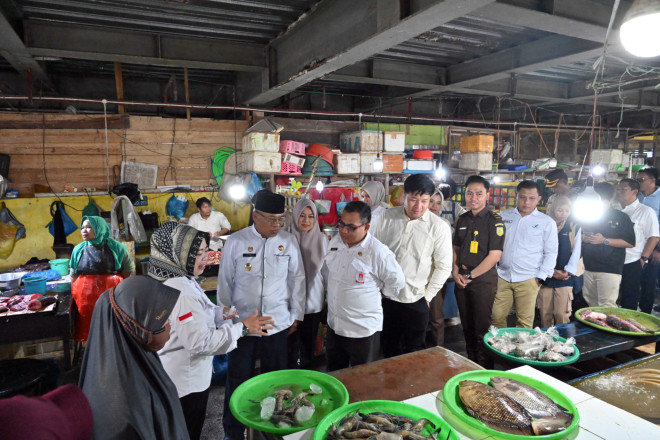 Bupati Kotawaringin Barat (Kobar) Nurhidayah bersama Wakil Bupati Suyanto melaksanakan inspeksi ke Pasar Indrasari, Kelurahan Baru pada Rabu (11/3)./FOTO: ist